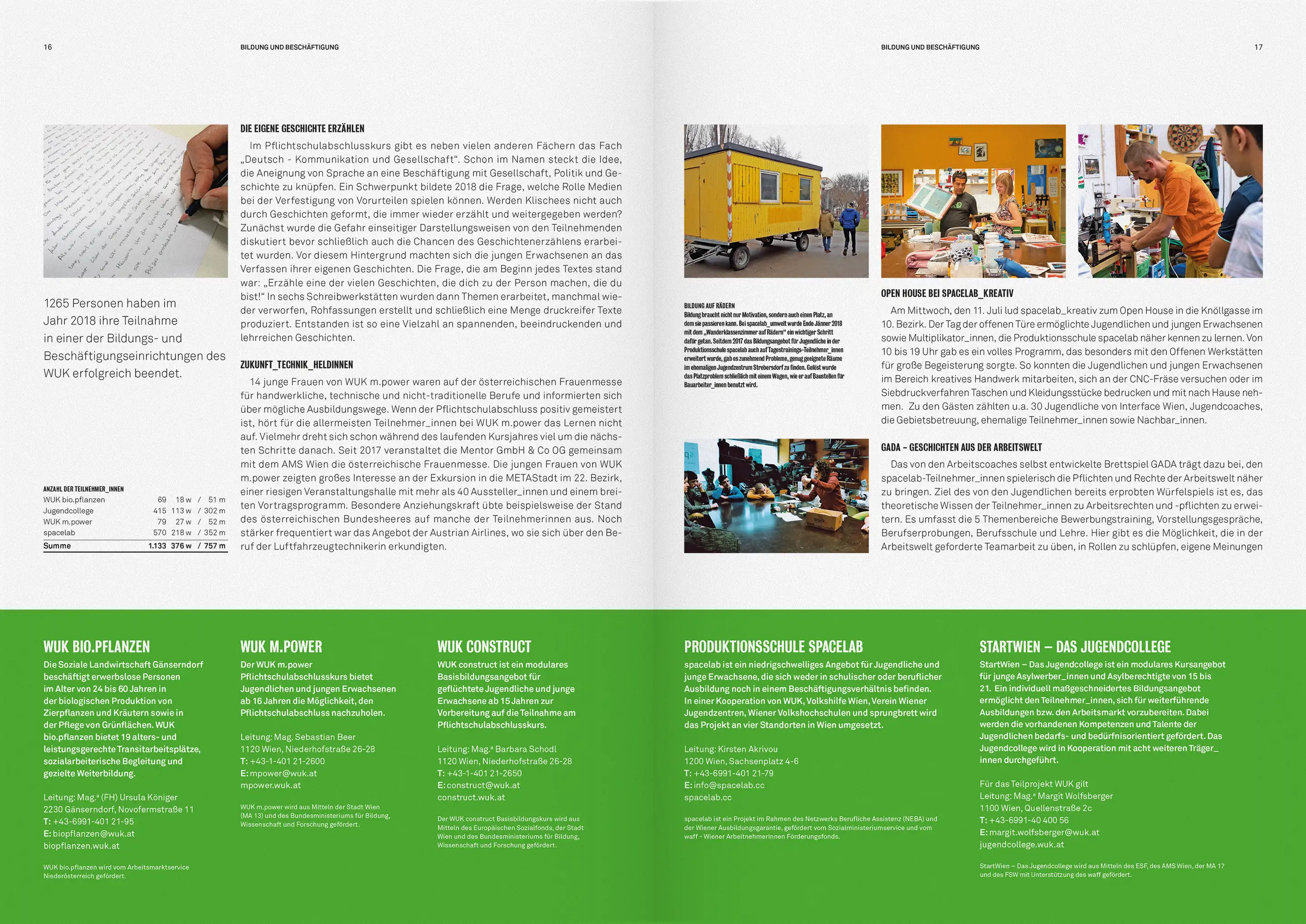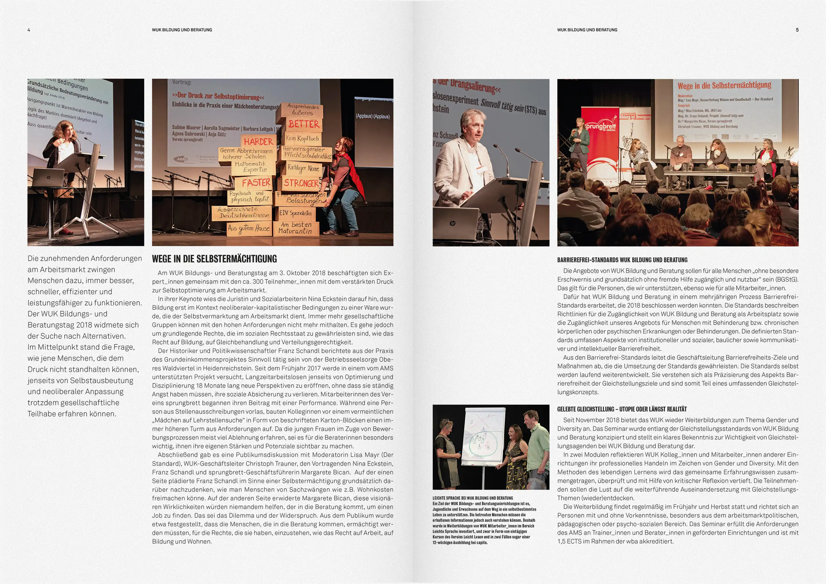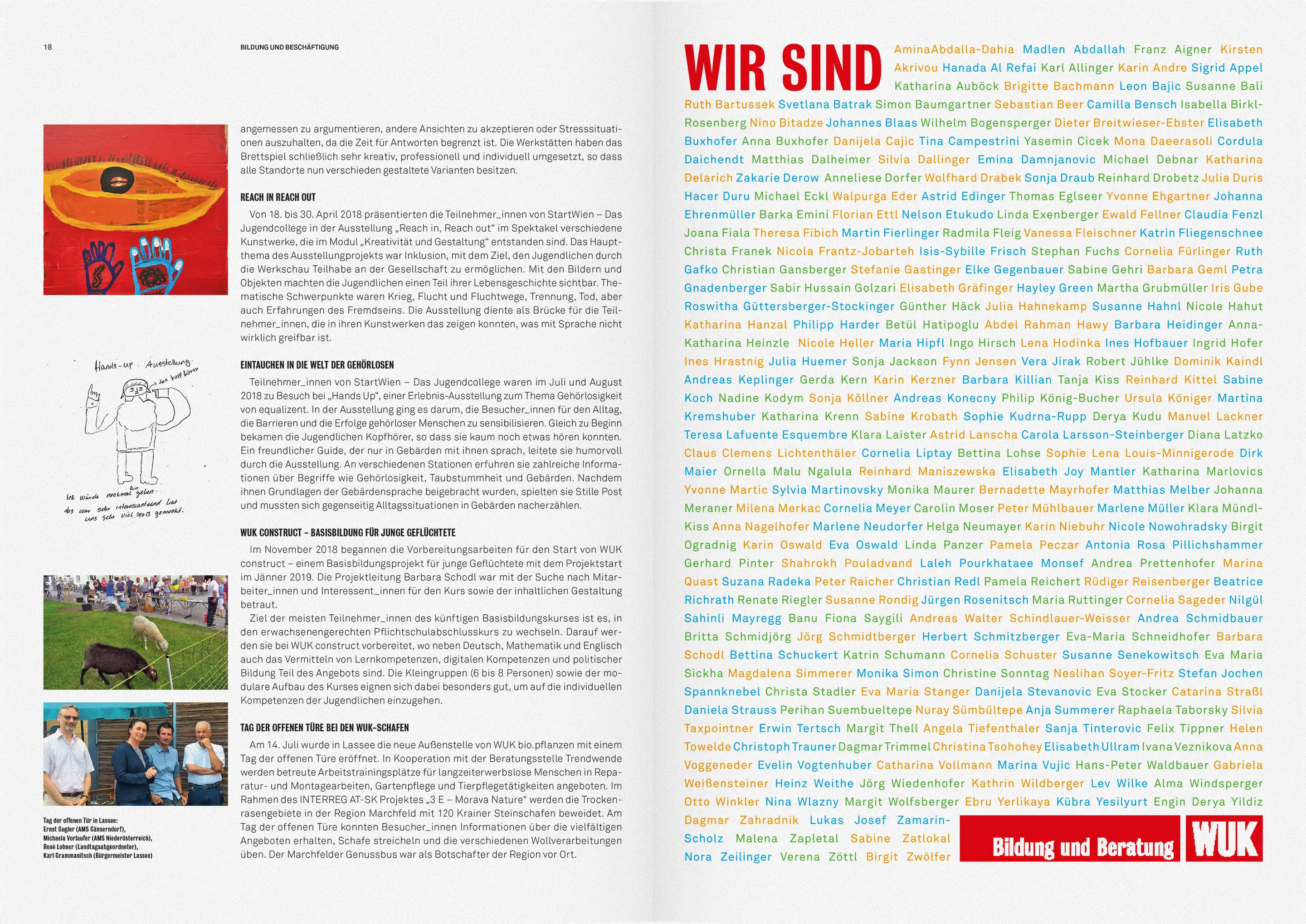 WUK Bildung und Beratung richtet sich an junge Menschen, mit Problemen auf dem primären Bildungsweg. Der Claim „Bildung ist Bewegung“ verweist auf die Aktivierung und Selbstermächtigung der Klienten. Als Anspielung auf die politische Relevanz des Themas, nimmt die Typografie Anleihen bei der Boulevard-Presse und kombiniert diese mit Visuals, die sich, im Street-Art-Stil, auf aktuelle, bildungspolitische Themen beziehen.